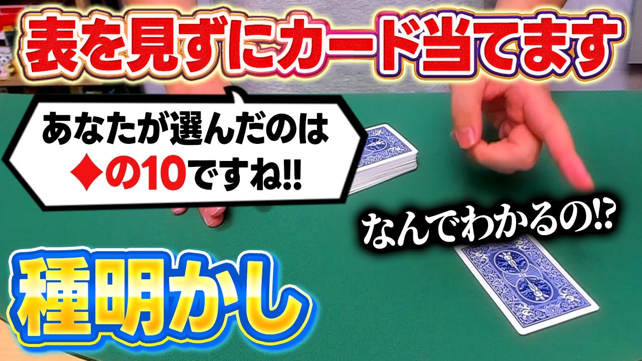 | タイトル | [894]【スゴすぎる】表を見ずに相手の覚えたカードを当てる!簡単ですごいトランプマジックの種明かし |